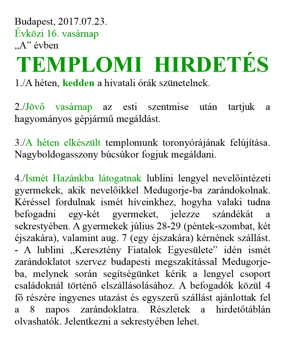 ( elsőpénteken 2009. 01.hó-tól nincs esti mise!)